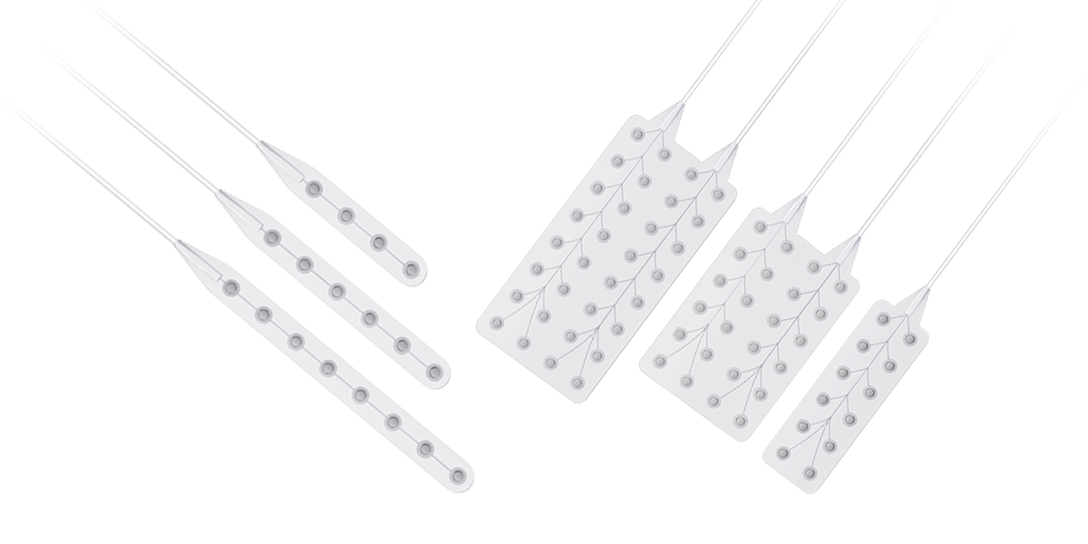 電極點多列排布,覆蓋區(qū)域大,可為醫(yī)生提供大范圍皮層電活動的詳細情況。 用于確定致癇灶的切除范圍和切除后是否有殘留等。